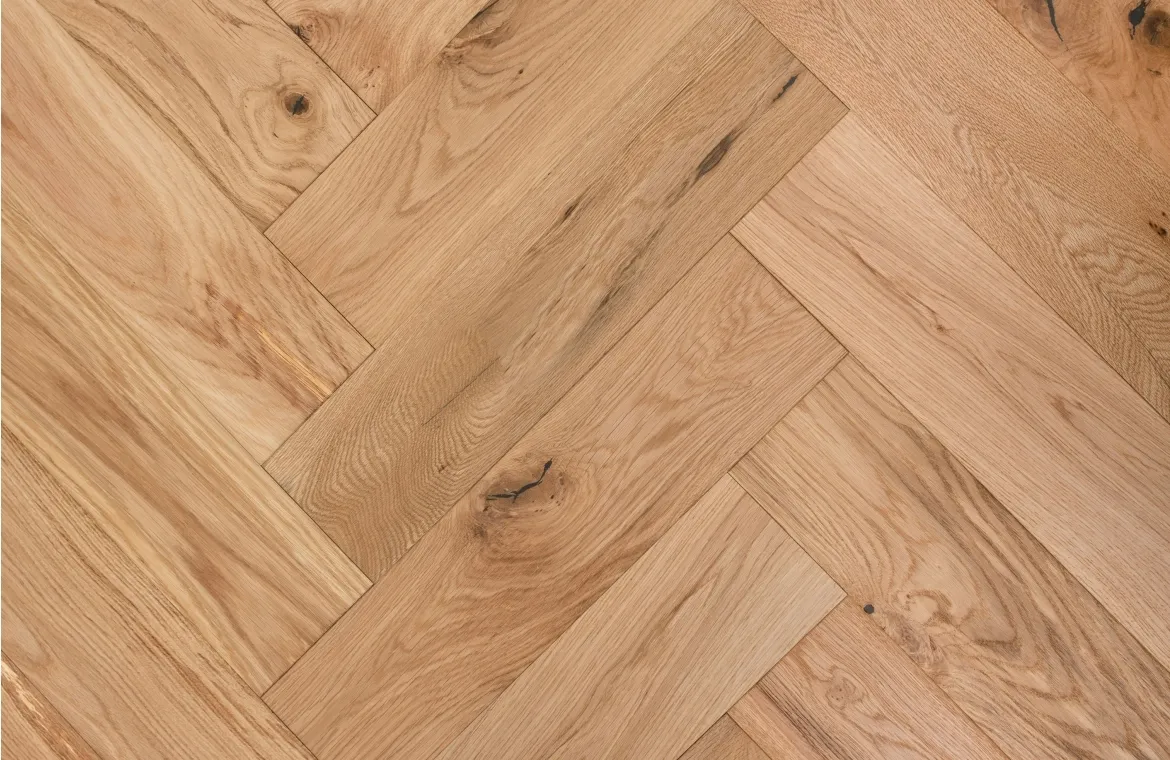 Painswick Swift engineered oak herringbone flooring with smooth surface and oiled finish. 15mm thick with 4mm wear layer and tongue & groove. Suitable for nailing or gluing down. Underfloor heating compatible, ideal for all rooms except bathrooms.
